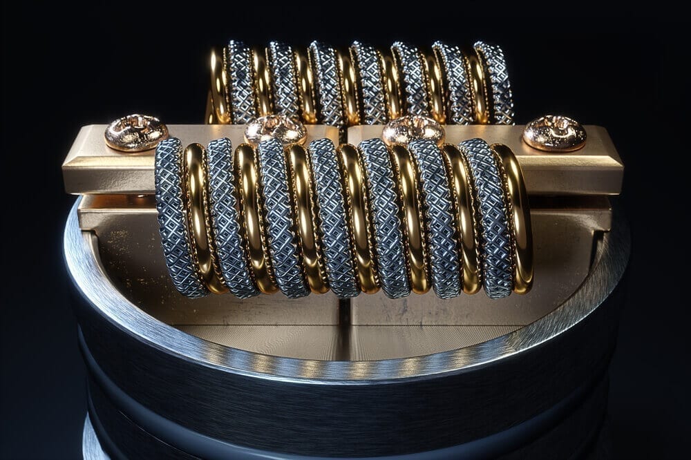 La bobine est le meilleur homme de la partie vaping, ce qui signifie qu’il devrait tout garder chaud. Logiquement, plus la surface de la bobine est grande, plus le e-liquide est chaud. Nous avons des bobines torsadées, tressées et Clapton qui fonctionnent bien, mais ont beaucoup de coins et recoins qui recueillent le e-liquide.