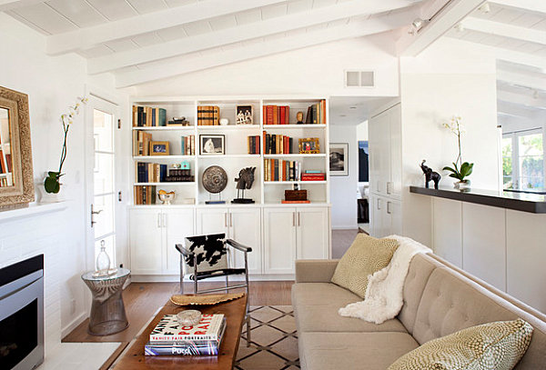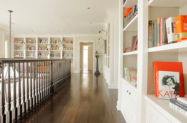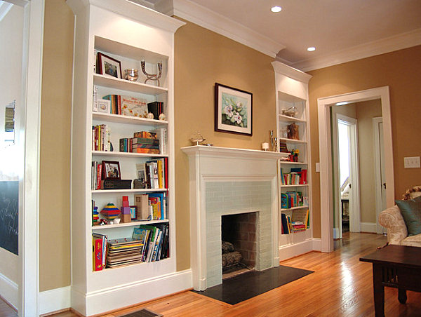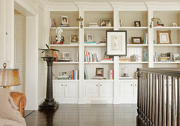 Bibliothèque blanche avec étagères Robbins Architecture
