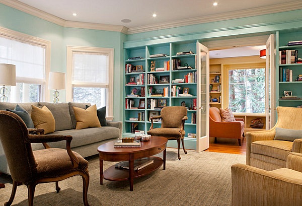 Décoration bibliothèque bleu ciel