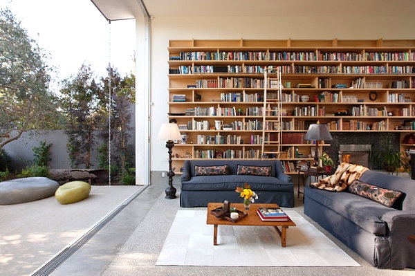Grande bibliothèque murale dans une maison contemporaine