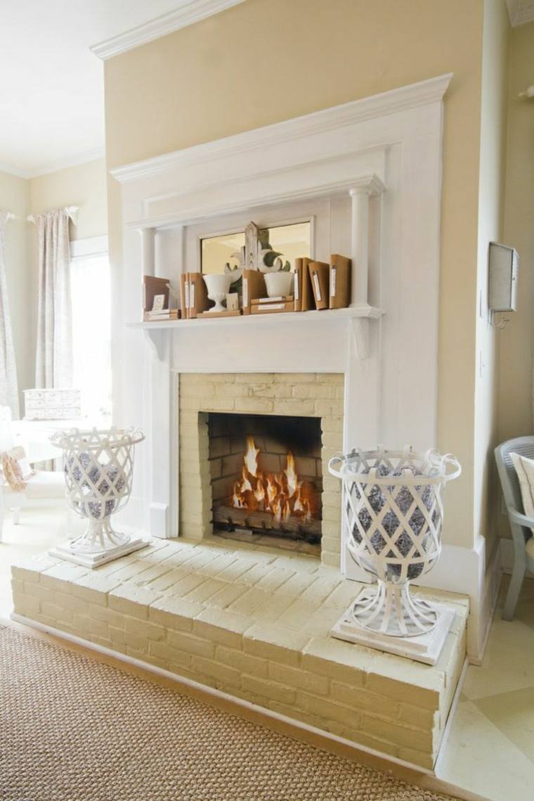S’ il y a une fenêtre dans la cheminée d’angle, vous pouvez utiliser des rideaux dans des tons crème pour adoucir la décoration. Les stores vous permettent de contrôler la lumière, donc c’est une bonne option si vous vous attendez à utiliser le coin comme espace détente. Une plante verte ou une fleur dans un pot design donnera une touche de fraîcheur à votre décor. Regardez les images ci-dessous pour plus d’idées :