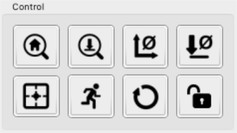 Ce bouton réinitialise le point zéro des axes X et Y. Il envoie la commande « G92X0Y0 ».