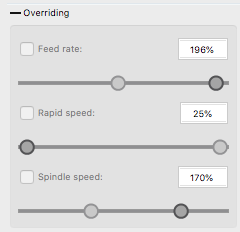 Cette partie vous permet de remplacer certains préréglages dans votre fichier Gcode. Pour cela, il suffit de vérifier la ligne correspondante et de varier le curseur.