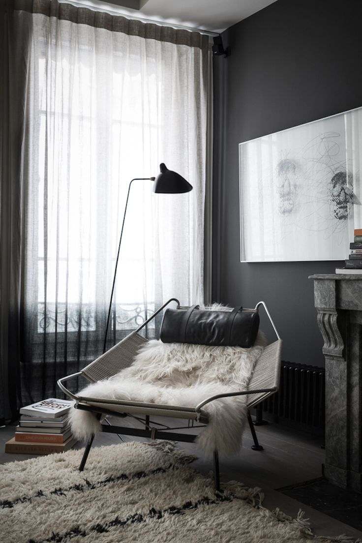Quelle couleur mur pour votre salon : un très bon mariage de bois (parquet), blanc et noir