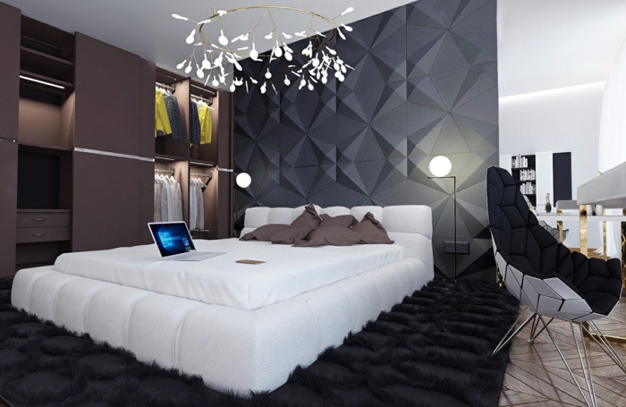 Le gris est présent partout — surtout dans la chambre à coucher dans un style contemporain