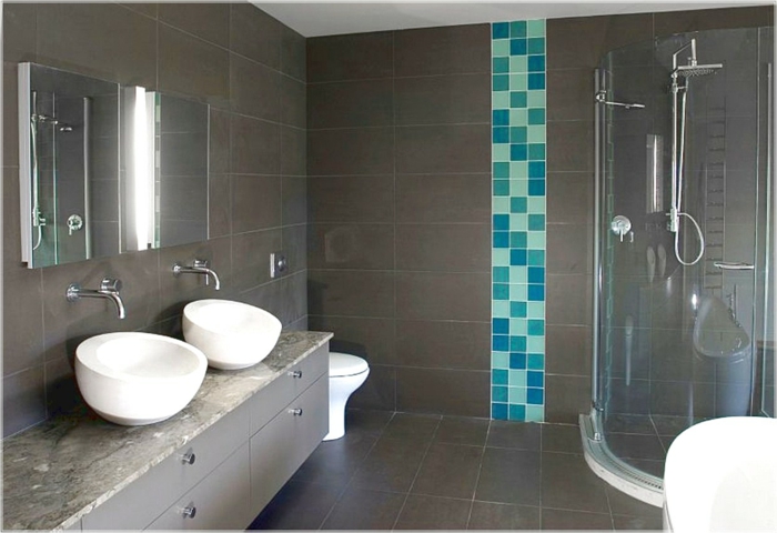 Comme il est à la mode — une salle de bain en gris et turquoise