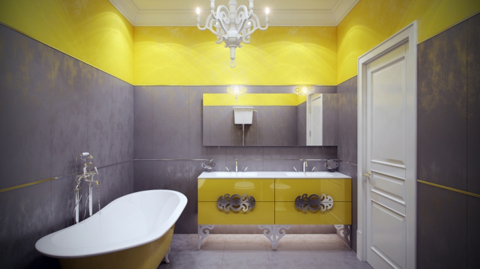 Salle de bain en gris et jaune
