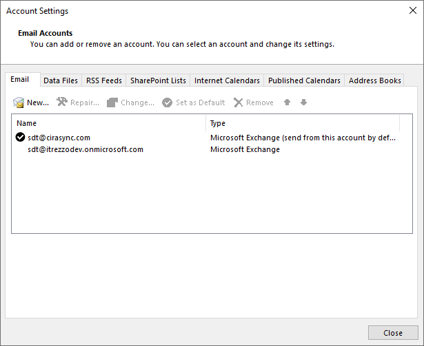 - Cliquez sur FermerREMARQUE :. La boîte aux lettres partagée peut ne pas apparaître immédiatement après l’exécution de ces instructions. Dans ce cas, fermez l’application Outlook et redémarrez-la après quelques minutes.