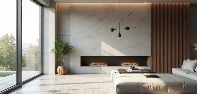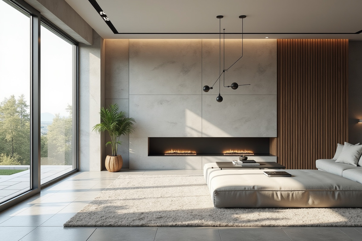 Pour un salon à l’atmosphère conviviale, optez pour un carrelage imitation pierre aux teintes chaudes, comme le beige ou le marron. Associez-le à des meubles en bois et des textiles naturels pour renforcer cette impression de chaleur et de confort. Le carrelage aspect pierre naturelle s’intègre parfaitement aux styles rustiques ou scandinaves, apportant une touche d’authenticité.