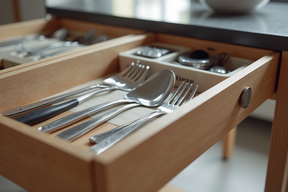 Inutile d’attendre une révolution : de petites optimisations font déjà la différence. Les boîtes transparentes aident à voir tout de suite ce qui est rangé. Tiroirs coulissants et paniers glissés dans un coin permettent d’utiliser chaque centimètre souvent délaissé, et de limiter l’empilement artificiel.
