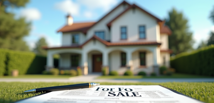 Maison individuelle avec panneau a vendre et document financier