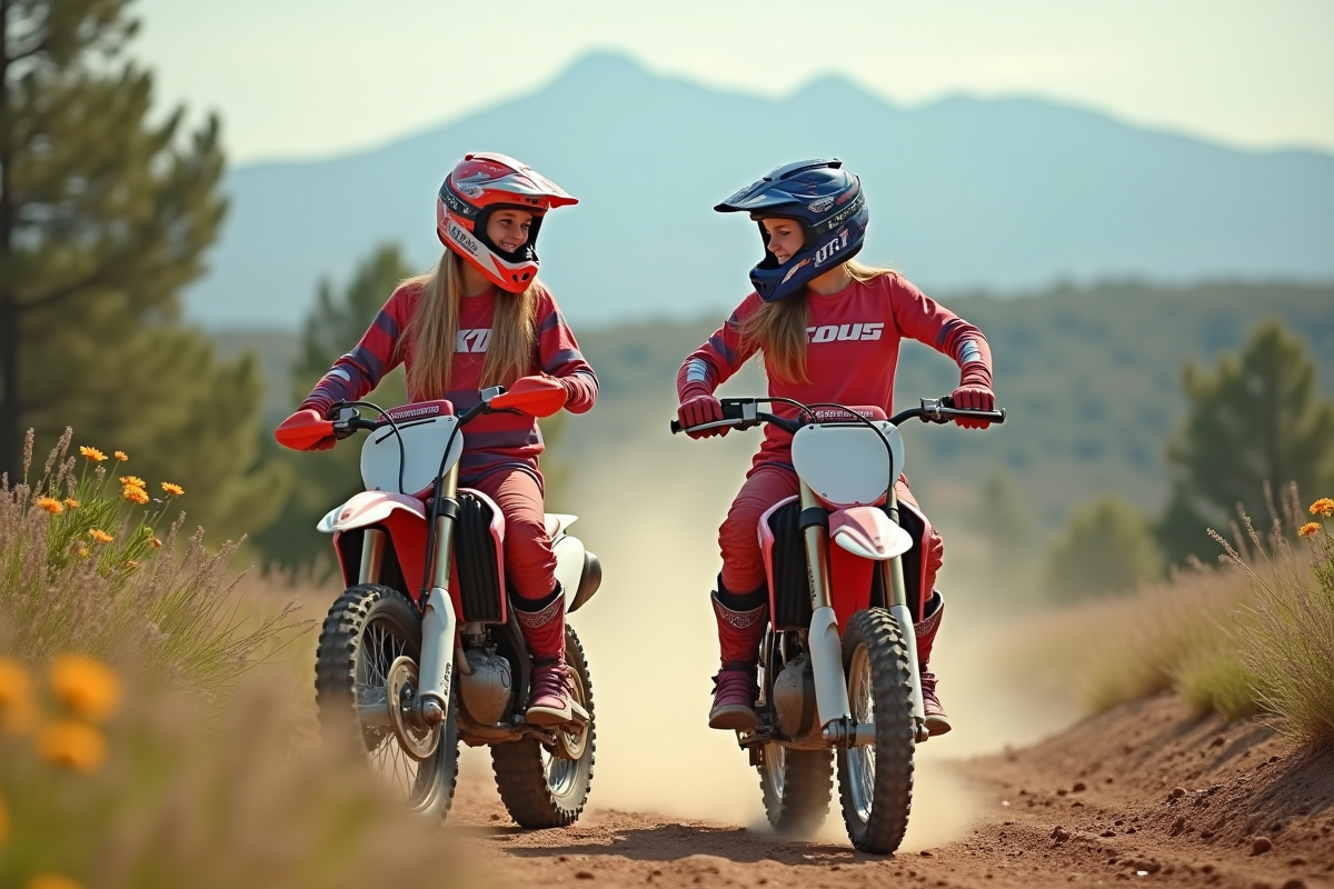 Deux adolescentes souriantes avec leurs motos tout-terrain