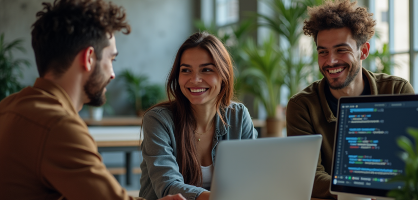 Groupe de jeunes adultes collaborant dans un espace de coworking lumineux