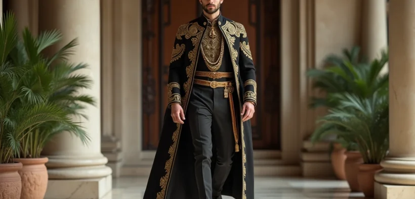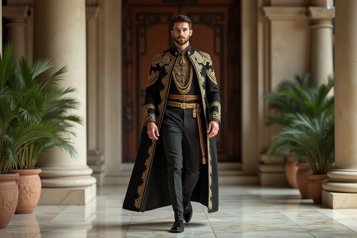 Homme déterminé en tenue cérémonielle dans un hall élégant