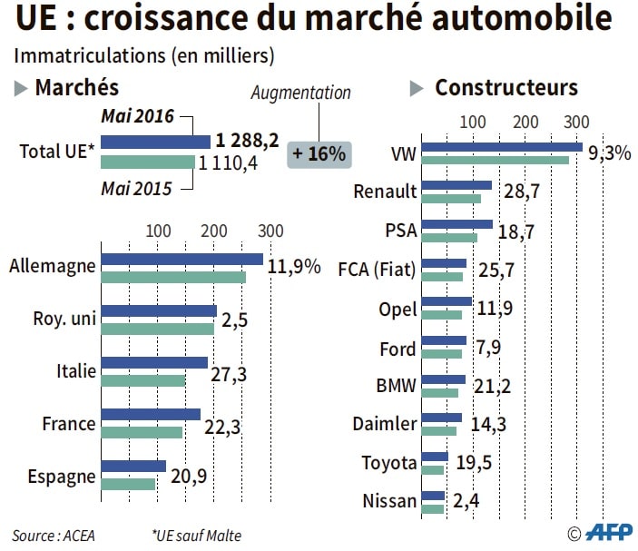 Entre janvier et novembre 2016, le marché européen a comptabilisé 13,5 millions de voitures particulières immatriculées, soit un gain de 7,1 % par rapport à la même période l’an passé. Sur une base annuelle, la progression atteint 4,6 %, preuve d’un redressement solide mais sans emballement.