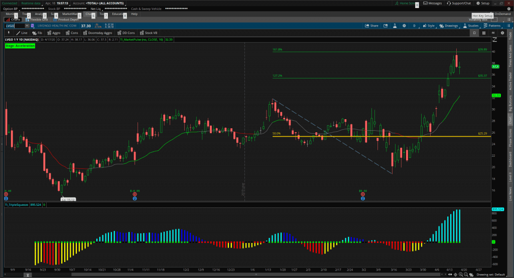 Imaginons que vous déteniez déjà 100 actions de Livongo Health (LVGO), qui approche le retracement 1.618.