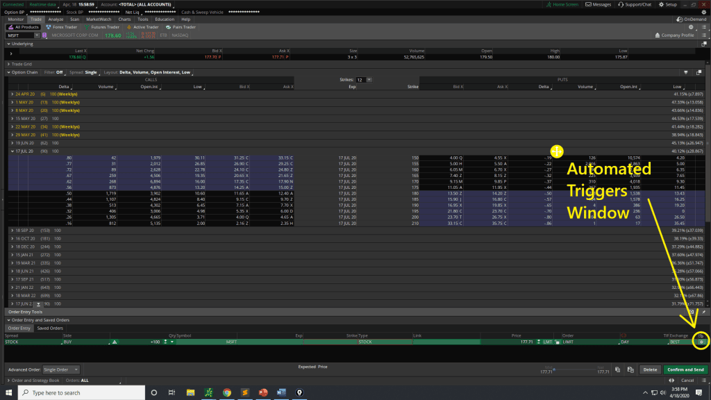 Pour accéder à la fenêtre de trading automatisé, commencez par créer un ordre dans ThinkorSwim.