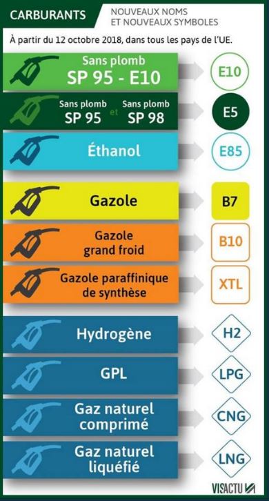 Les carburants gazeux, eux, s’affichent dans un losange. Plusieurs acronymes sont à repérer :
