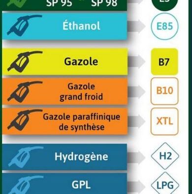 Les carburants gazeux, eux, s’affichent dans un losange. Plusieurs acronymes sont à repérer :