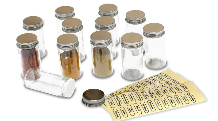 Pour conserver les épices, rien ne vaut les petits pots en verre avec couvercle hermétique. C’est simple, pratique, et ça évite les transferts de saveur. Ces contenants existent en plusieurs tailles : de petits bocaux type mason jusqu’aux lots de 12 bocaux en verre qu’on trouve pour moins de 15 $, ou même à l’unité chez The Container Store ou Bed, Bath & Beyond.