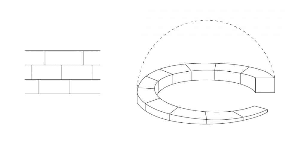 Vient le moment de donner forme à vos briques. Pour que la structure s’élève naturellement, il faut tailler chaque bloc en trapèze (pour les souvenirs incertains de géométrie, imaginez un parallélogramme dont deux côtés se rapprochent). Cette forme permet aux blocs de s’imbriquer en cercle sans laisser de jour.