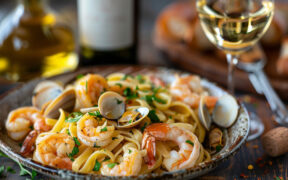 Les pâtes aux fruits de mer représentent un véritable délice pour les amateurs de cuisine raffinée. Pour sublimer ces saveurs marines, le choix du vin s’avère fondamental. Un vin blanc sec, comme un Sauvignon ou un Chablis, se mariera parfaitement avec la fraîcheur des coquillages et crustacés, apportant une touche d’acidité qui équilibre les saveurs