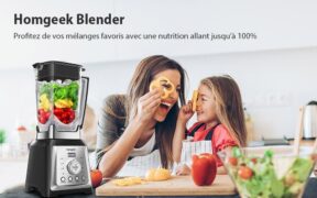 Homgeek Blender Professionnel 2000W, Blender Smoothie, Mixeur Puissant avec 8 Vitesses Réglables, Multifonction Mixer Blinder avec 4 Programmes Prédéfinis, 33000tours/min, Jarre Tritan 2L, sans BPA Homgeek Blender 2000W est un appareil de cuisine polyvalent qui s’utilise pour la préparation des smoothies, des jus de fruits, des milkshakes, des soupes, etc. Celui-ci embarque un moteur puissant